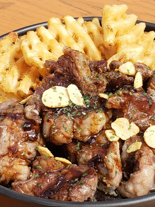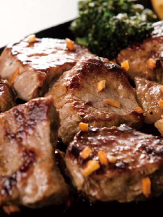 柔らかなステーキ肉を使用し丁寧に焼き上げ、香ばしいガーリックソースで仕上げました!